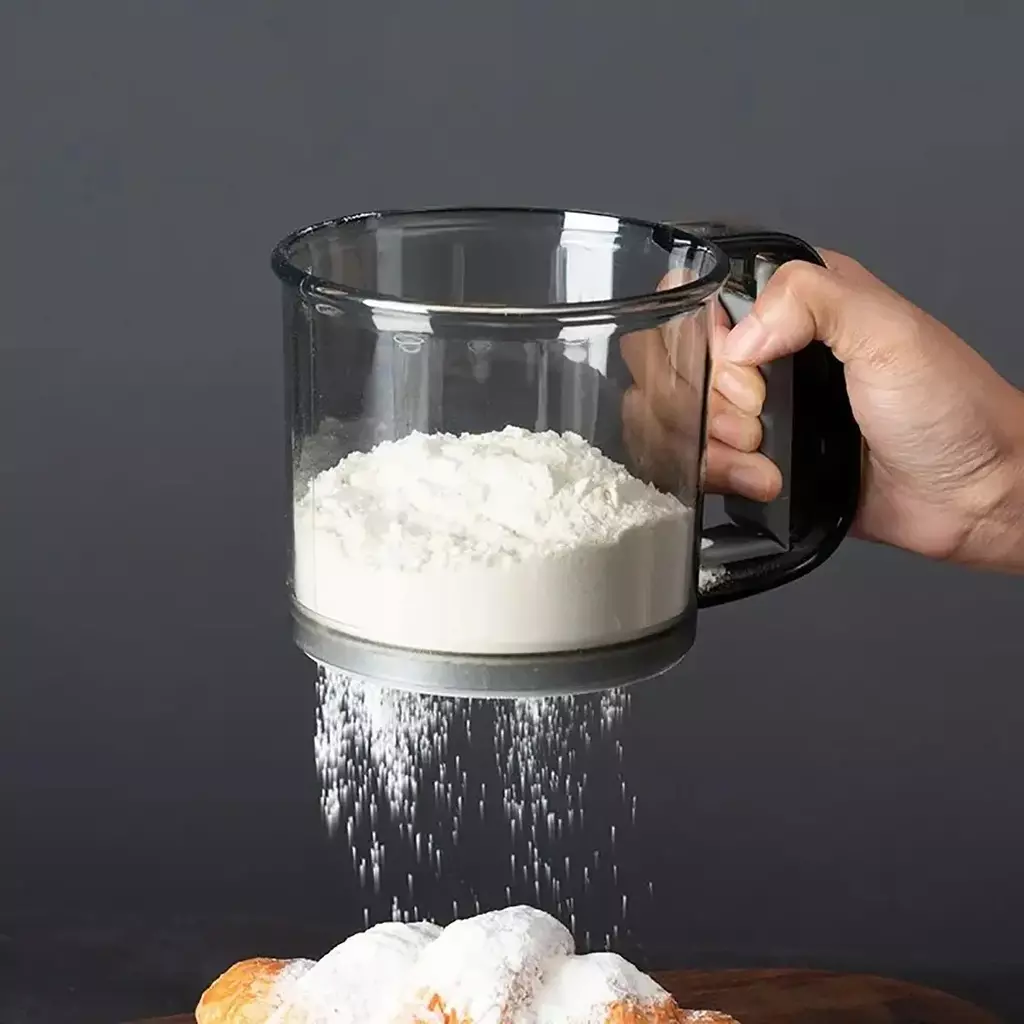 Prepare receitas com muito mais agilidade e textura perfeita usando esta peneira de farinha em formato de copo. Ideal para confeitaria, massas, bolos e panquecas, ela combina facilidade de uso, design ergonômico e materiais seguros para alimentos.